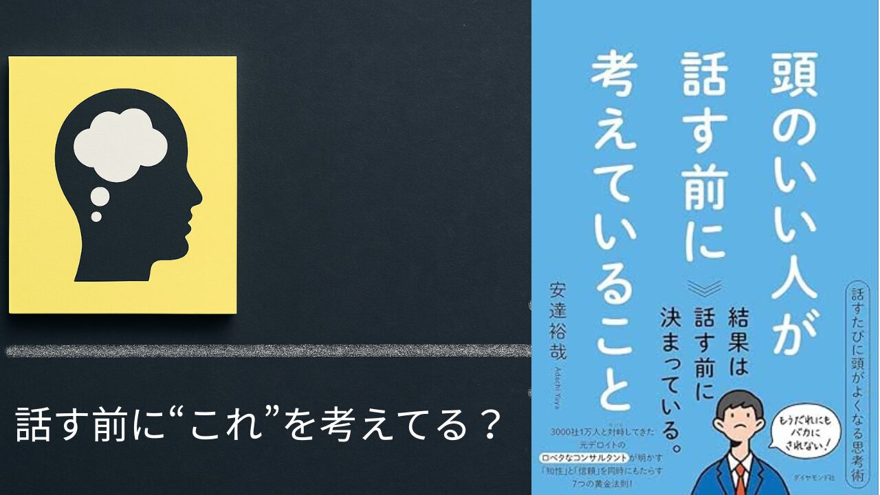本記事では、安達裕哉さんの著書『頭のいい人が話す前に考えていること』の内容をもとに、頭のいい人が「話す前にどんなことを考えているのか」を、実例つきで整理して紹介します。