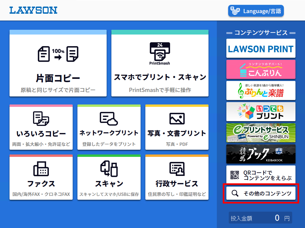 画像はサンプルとして、私が一番使う”ローソン”のコンビニプリント機のメニューです。